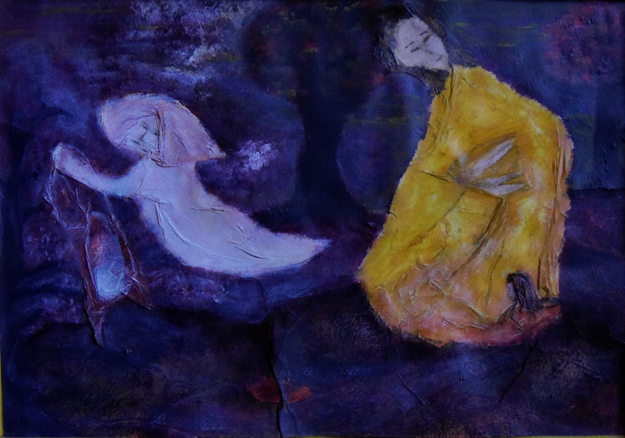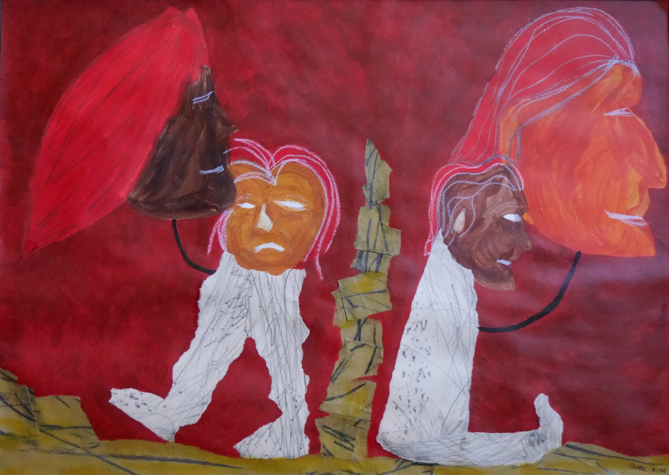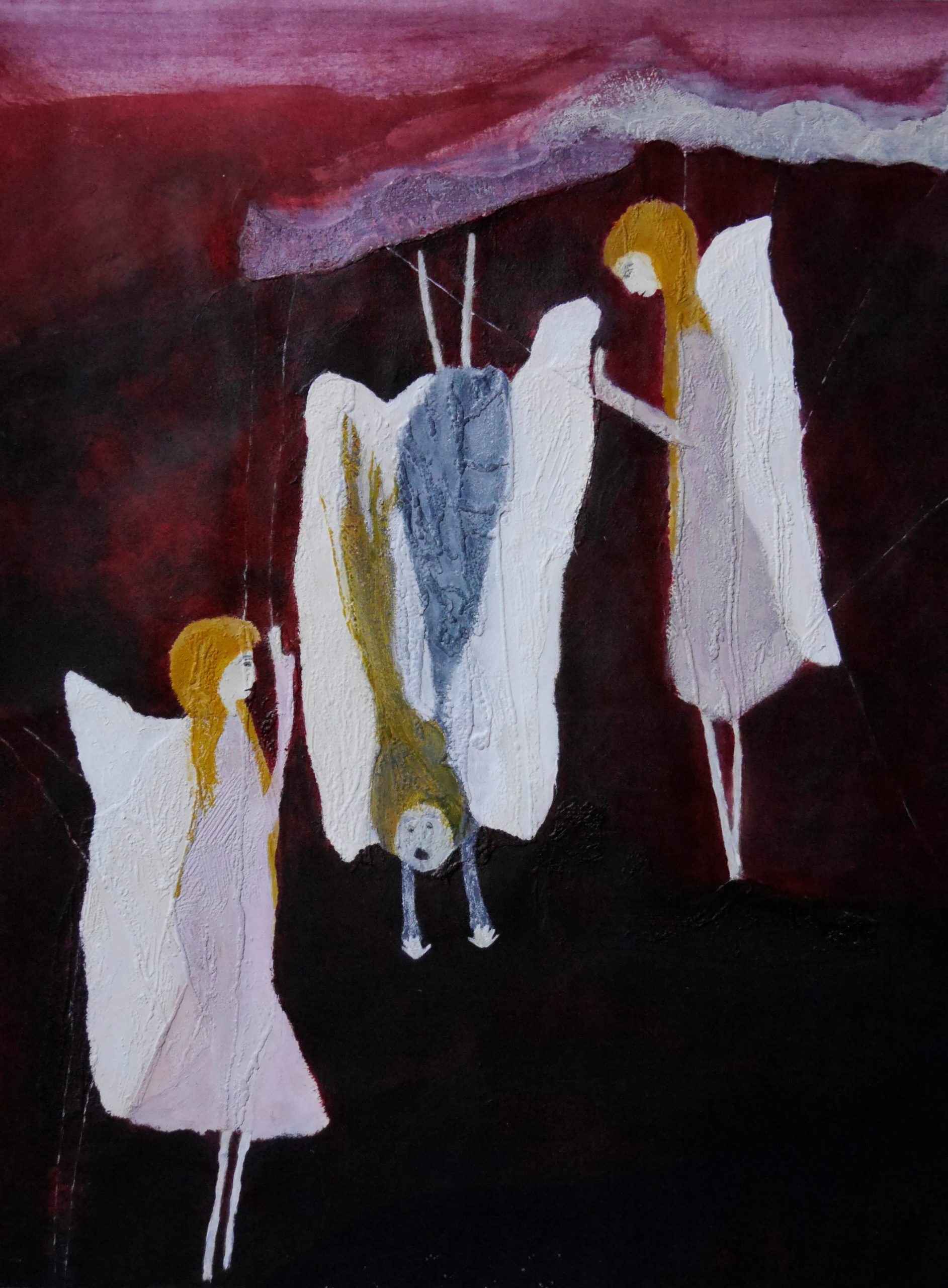 Innenwelt-Bilder AbwehrmaskeGouache/Acryl/Graphit 48x68cm 2001Afrikanische SzeneAcryl auf Holz 50x60cm 2019Alte auf der SchaukelPapier/Acryl/Faden 48x34cm/weißer Holzrahmen 2010AndalusierinPapier/Acryl/Graphit 48x51cm 2021WindbrautAcryl 27x38cm 2025AufschwungPapier/Acryl/Ölkreide 68x48cm/roter Holzrahmen 2014BaumfrauAcryl 12x49cm 2015BaumgeisterGouache 67x95cm 2011Beschwingter EngelPapier/Gouache/Acryl 76x57cm/gelber Holzrahmen 2001BeziehungsweisePapier/Acryl/Strick 48x33cm/oranger Holzrahmen 2012 verkauftBöser TraumPapier/Acryl 33x23cm/blauer Holzrahmen 2010BrütendeAcryl auf Stoff 31x22cm/gelber Holzrahmen 2012ClownPapier/Acryl 39x56cm/weißer Holzrahmen 2007 verkauftDa schwang die Schaukel durch den SchmerzPapier/Acryl/Holz/Faden 47x68cm/weißer Holzrahmen 2010 verschenktDer Herr sieht allesPapier/Acryl 31x41cm/oranger Holzrahmen 2008Der MantelAcryl/Kreide 28x41cm 2023Die 13.FeeTusche 28x41cm/blauer Holzrahmen 2010DrachentöterAcryl auf Stoff 17x22cm 2018 verkauftDrei WeiseEnkaustik/Acryl/Leinwand 10x15cm 2023 verschenktElfengesichtPapier/Efeu/Acryl 40x55cm/weißer Holzrahmen 2006EngelGouache-Öl/Acryl / Leinwand 15x10cm 2023 verschenktEngel und TodAcryl 34x48cm 2013Eos und PegasosPapier/Acryl/Graphit 26x26cm/gelber Holzrahmen 2008Fallender EngelTapete/Papier/Acryl 48x60cm 2009Familie im LichtAcryl 33x49cm 2000FeuertanzPapier/Gouache/Acryl 79x104cm/gelber Holzrahmen 2004FrauenkopfGraphit/Kohle/Gouache 52x50cm 2022FüchsinPapier/Blätter/Acryl 40x27cm 2015 verkauftGefangenCollage Acryl/Foto/Graphit 48x34cm 2001Gegen WaffenGouache/Graphit/Acryl 26x38cm 2025GeisterPapier/Acryl 29x39cm 2018GeisterstundePapier/Acryl 28x23cm/weißer Holzrahmen 2011Heaven's doorPapier/Stoff/Acryl 19x19cm/weißer Holzrahmen 2011Heiliges LandPapier/Gouache/Acryl 68x54cm 2025HexenfeuerLeinwand/Acryl 60x50cm/schwarzer Holzrahmen 2008 verkauftHexereiPapier/Acryl 28x38cm 2016Hoffnung ist ein schmales FensterAcryl/Pastell auf Holz 30x30cm 2021Hoffnung über dem AbgrundGraphit/Gouache 91x49cm 2022Im LichtTusche/Acryl 44x39cm/brauner Holzrahmen 2015Innere FrauPapier/Mull/Acryl 47x66cm/weißer Holzrahmen 2011IrrlichtPapier/Acryl 40x28cm/gelber Holzrahmen 2011JudithPapier/Acryl 30x40cm/gelber Holzrahmen 2008KampfbereitPapier/Faden/Strick/Acryl 25x23cm 2015 verkauftKämpferinAcryl/Pflanzenfasern 68x83cm 2016Kein PaarPapier/Pinselhaare/Acryl 68x97cm 2013Licht in der TiefePapier/Acryl 48x68cm/hellgelber Holzrahmen 2008LoreleiPapier/Acryl 48x33cm 2020Mädchen im NachthemdPapier/Acryl 23x37cm 2014Mädchen mit LaternePapier/Acryl 75x105cm/gelber Holzrahmen 2005MaskeradeSilberfolie/Acryl/Aquarell 28x28cm 2001MeerjungfrauGouache/Graphit/Acryl 47x58cm 2025MondnachtPapier/Acryl 49x39cm/weißer Holzrahmen 2007Mutter und KindPapier/Gouache/Acryl 65x68cm 2009Mutter und TochterPapier/Acryl 24x33cm 2015NachtgeisterPapier/Acryl 38x51cm 2015NachtmahrPapier/Ölfarbe 26x26cm/blauer Holzrahmen 2008NixeAcryl 30x23cm 2013Paar im LichtÖlkreide 30x21cm 2014Pierrot's AbschiedAcryl/Graphit 28x40cm 2023QuellePapier/Aquarell/Acryl 45x28cm/blauer Holzrahmen 2012Quelle der FrauenPastellkreide/Graphit 27x25cm 2025RabenfrauPapier/Acryl 47x32cm/gelber Holzrahmen 2012Roter DrachePapier/Graphit/Ölkreide/Acryl 68x96cm/weißer Holzrahmen 2012SchutzengelAcryl 47x68cm 2018Stachelige WeltGouache/Graphit/Acryl 39x26cm 2025Suche nach der grossen MutterAcryl auf Leinwand 50x60cm/weißer Holzrahmen 2008Till EulenspiegelPapier/Acryl/Schellen 26x26cm/gelber Holzrahmen 2008 verschenktTrennung und HoffnungPapier/Kreide/Graphit/Acryl 75x57cm/schwarzer Holzrahmen 2001Über 7 BrückenPapier/Ölkreide/Acryl 96x63cm/oranger Holzrahmen 2014Über der BlütePapier/Acryl 48x48cm/weißer Holzrahmen 2009VerletzungPapier/Kohle/Acryl 17x29cm/weißer Holzrahmen 2012VisionssuchePapier/Acryl 48x68cm 2014Von der Schwierigkeit,das Kind in die Welt hinauszuschickenPapier/Acryl 20x28cm/weißer Holzrahmen 2011WächterPapier/Acryl 46x63cm/gelber Holzrahmen 2011WartenPapier/Acryl 38x33cm/weißer Holzrahmen 2012 verkauftWas drinnen stecktPapier/Acryl auf Holz 30x30cm 2021WindbrautPastell/Aquarell 30x21cm 2018ZerrissenPapier/Foto/Acryl/Aquarell 31x42cm 2013 verkauftZerstörung der GewohnheitenGouache/Acryl/Fineliner 28x40cm 2023Zwei Seelen wohnen ach in meiner BrustPapier/Acryl 40x27cm/gelber Holzrahmen 2012Zwischen Vergangenheit und ZukunftGraphit/Gouache/Acryl 36x18cm 2022